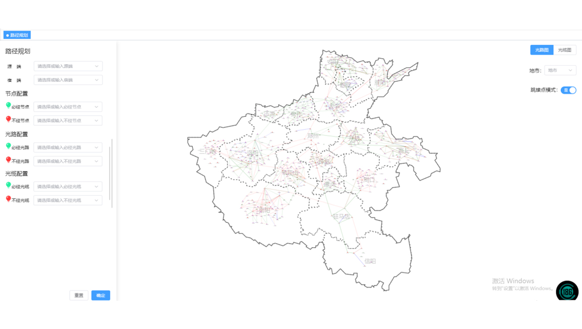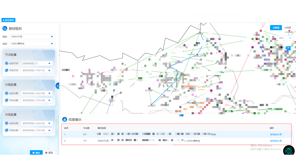创新性融合光路条件与光缆条件组合约束,突破性实现站点、光缆、光路组合故障下的业务迂回路径自动计算,实现方式路由规划工作中主备双重保护路径自动计算;